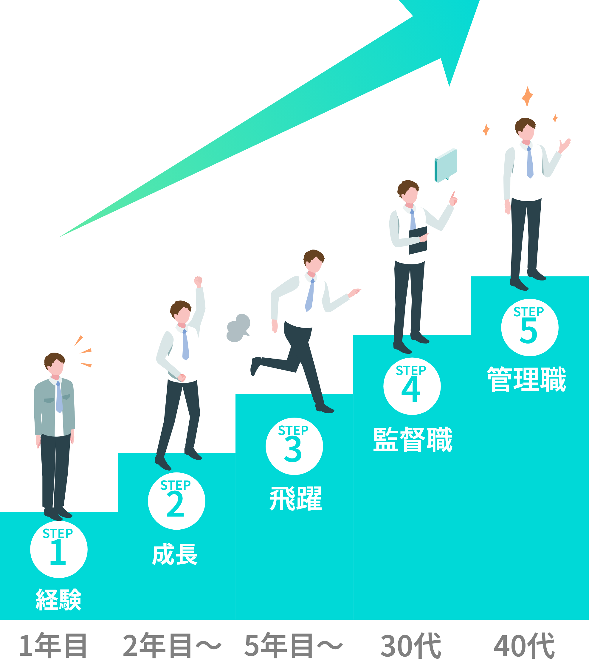 管理職として、マネジメント力を発揮し、管轄部門をまとめ経営にも携わっていきます。